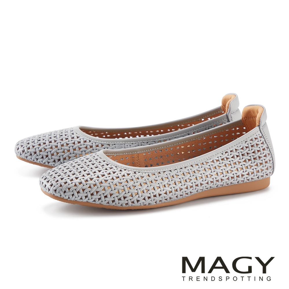MAGY 全真皮透氣簍空舒適平底鞋 米色 #15207