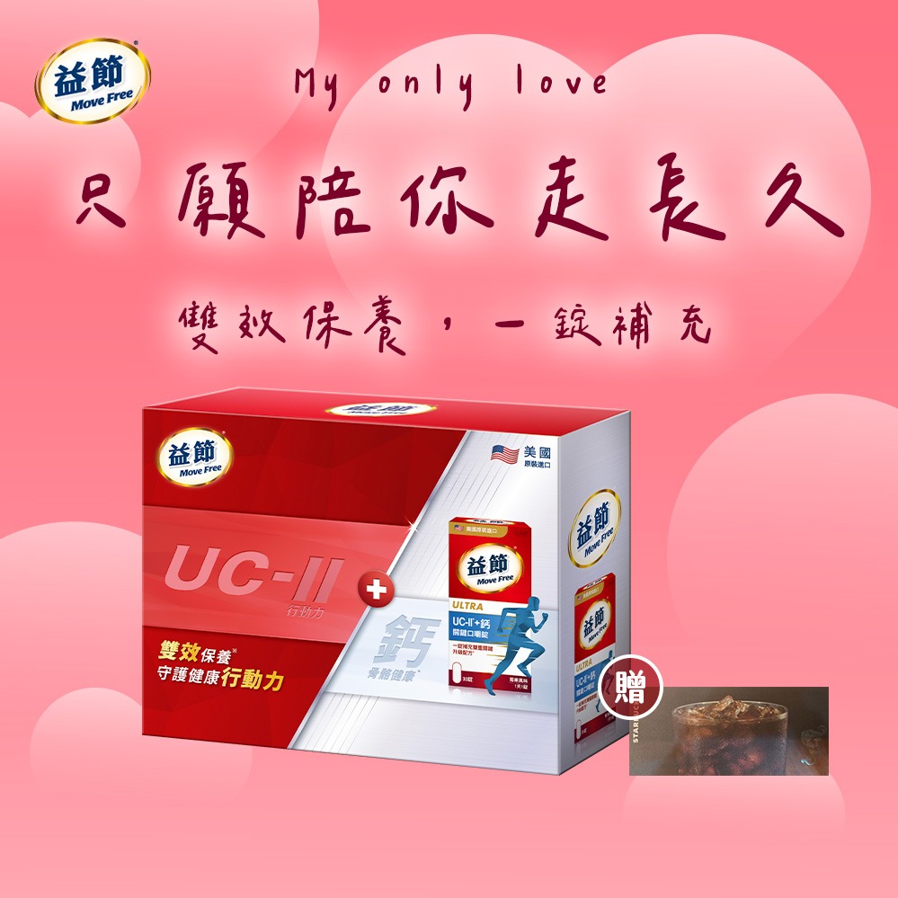 《🚚快速出貨》情人節快樂【Move Free 益節】UC-II加強型迷你錠2入組禮盒裝🗽送星巴克禮券