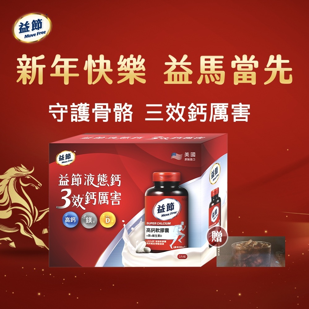 《🚚快速出貨》摩羯座生日快樂!🗽送星巴克禮券【Move Free益節】靈活雙效組🏃高鈣+鎂+維生素D液態軟膠囊(90錠)+UC-II+鈣關鍵口嚼錠(30錠)