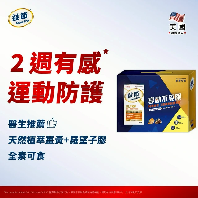 🗽送星巴克禮券【Move Free益節】關鍵靈活組🏃UC-II+鈣關鍵口嚼錠(30錠)+葡萄糖胺錠(150錠)