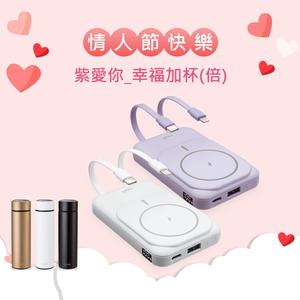 快速出貨🚚【紫愛你_幸福加杯_情人節快樂】磁吸自帶雙線五輸出無線充電快充行動電源 B101 E-books【台灣製造】