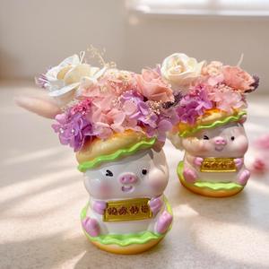 [粘粘&Hope花藝坊] 檜木底永生花花盅|開運 新年快樂 結婚禮物 情人節禮物 生日快樂 開業 喬遷 高升 禮物