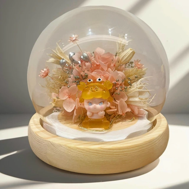 【 O'Pretty 歐沛媞】一鹿相伴 永生花衷心感謝玻璃罩附氛圍燈+禮盒(15.4X15.4X15.8cm)