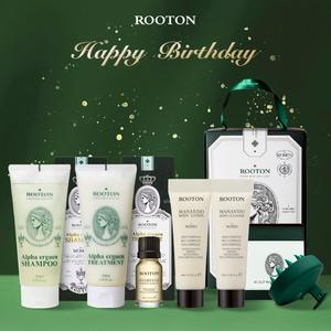 快速出貨【ROOTON】生日快樂!甦活植萃洗髮精200ml+甦活植萃護髮素200ml+喚活極萃雙效修護髮油8ml+頭皮按摩梳+沐浴膠10ml+身體乳10ml+植萃手提禮盒(天蠍座生日禮物)
