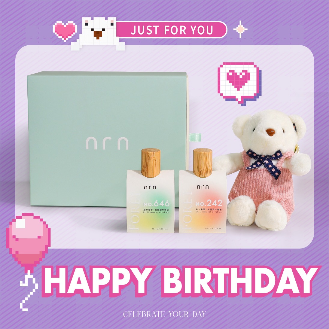 【NRN】Forêt滾珠精油泰迪熊禮盒💓附上情人節祝福禮卡 | LINE禮物獨家 | 送女友 | 香氛禮 | 情人節