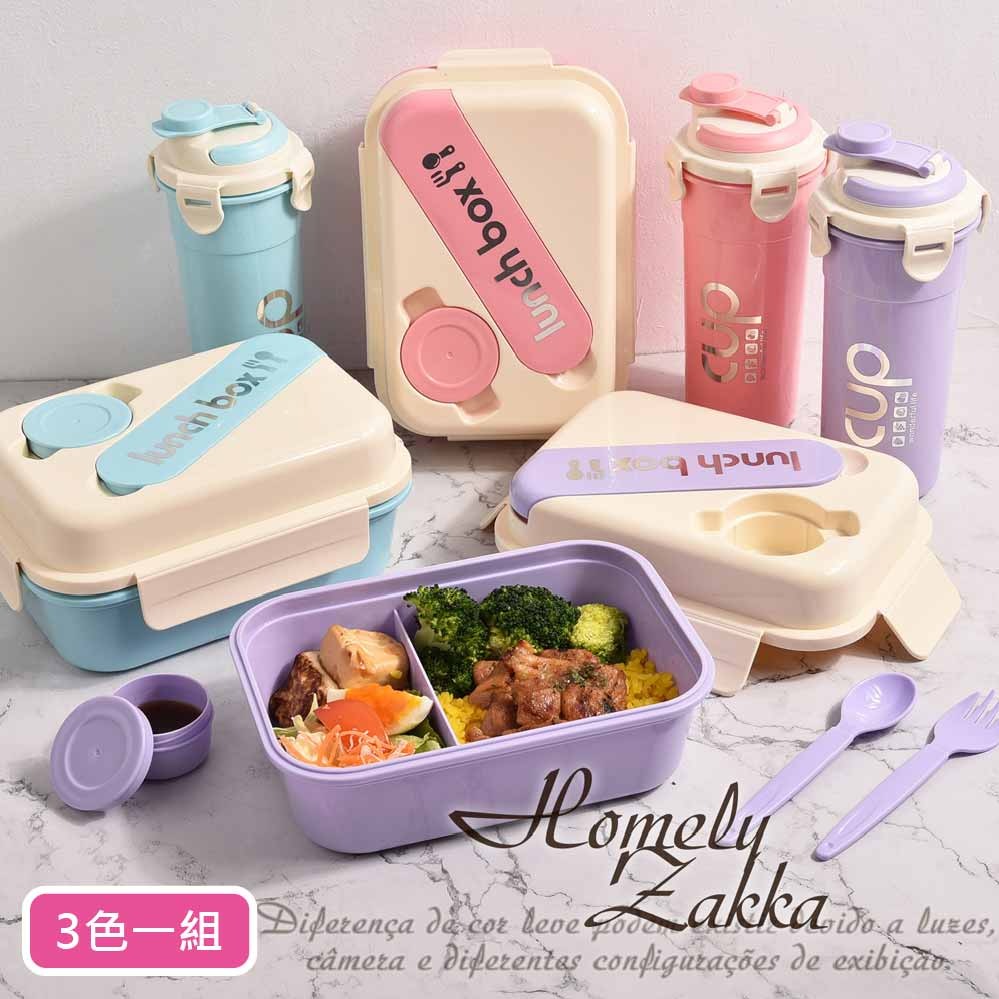 【Homely Zakka】可微波高顏值撞色馬卡龍享瘦分隔餐盒/便當盒附同款水杯_2入一組