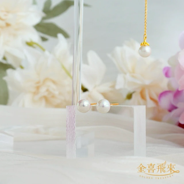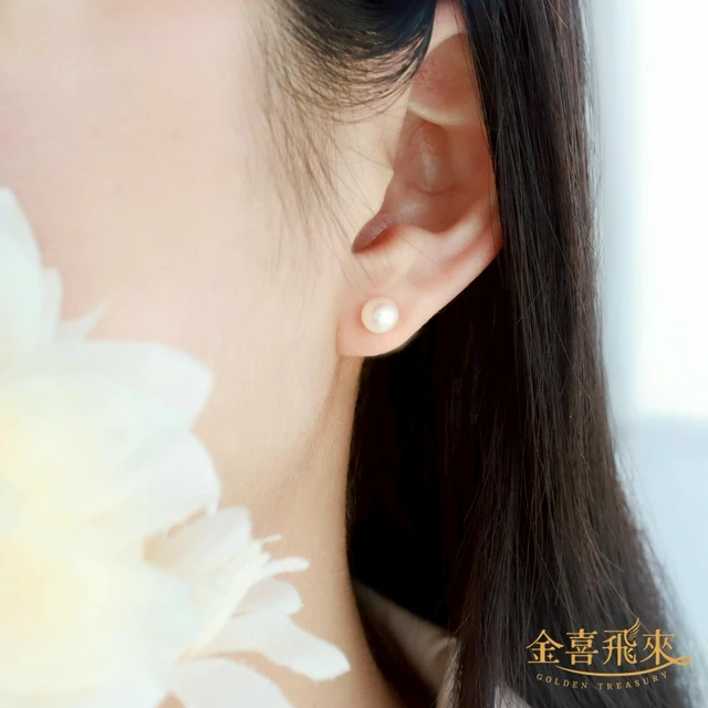 【金喜飛來】黃金耳環6mm珍珠直針一對入(0.12錢±0.02)【快速出貨】