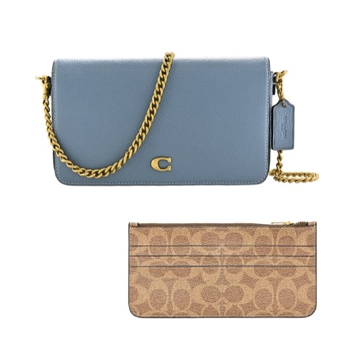 [平輸版] 【COACH】丹寧藍C LOGO PVC拼接深藍色素面皮革方型小款斜背男包 真品平輸