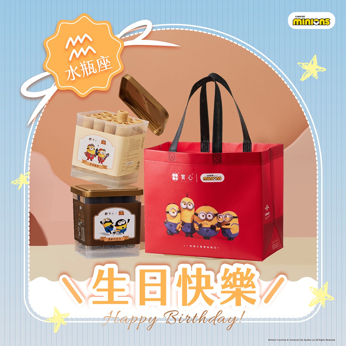 水瓶座 生日快樂♡快速出貨【實心蛋捲 |小小兵聯名】 實香雙拼組