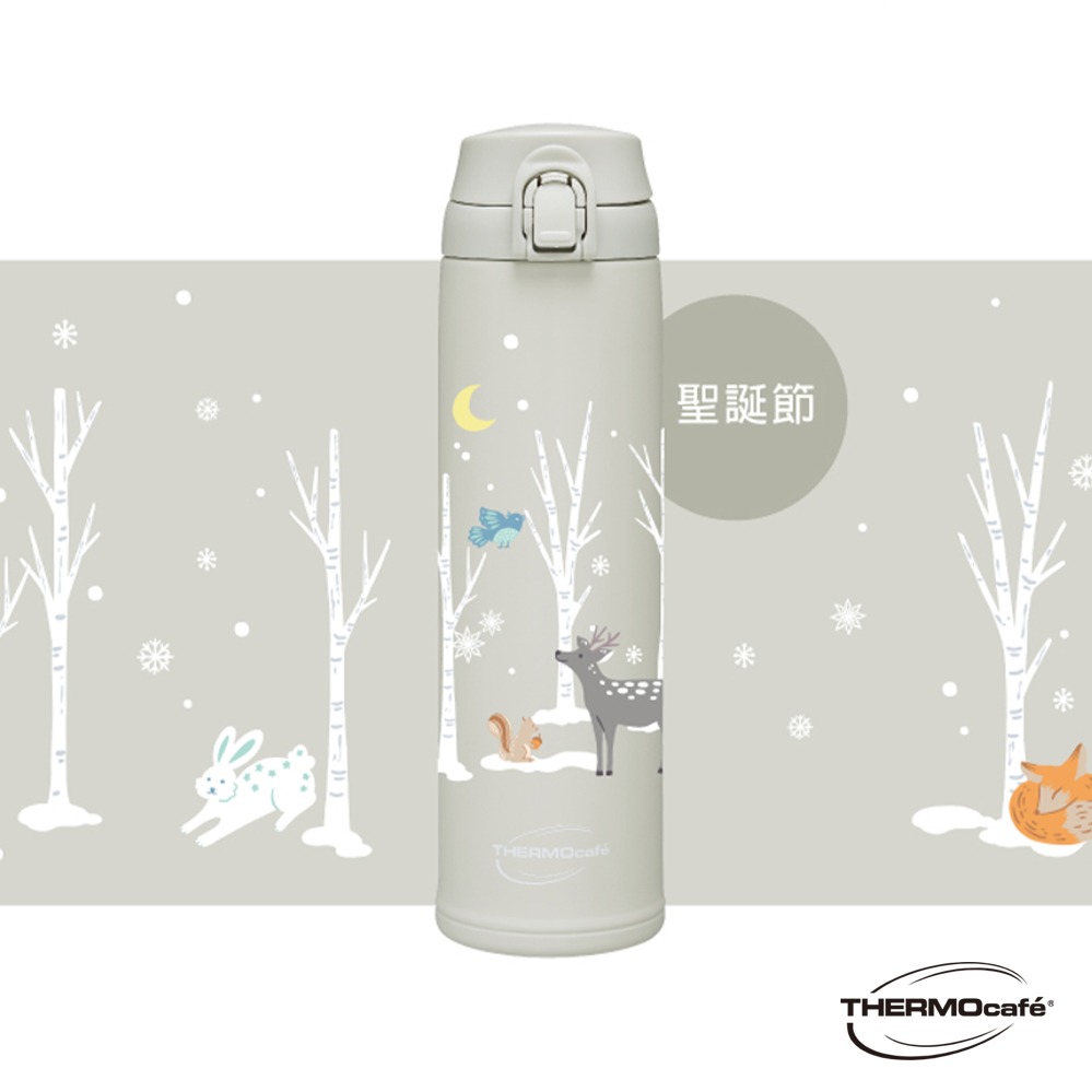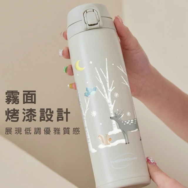 插畫家 靈魂喵喵 限量款🤍🖤【THERMOS 膳魔師】真空自動上鎖彈蓋保溫保冷瓶450ml(JNS-454DDS-DGY)