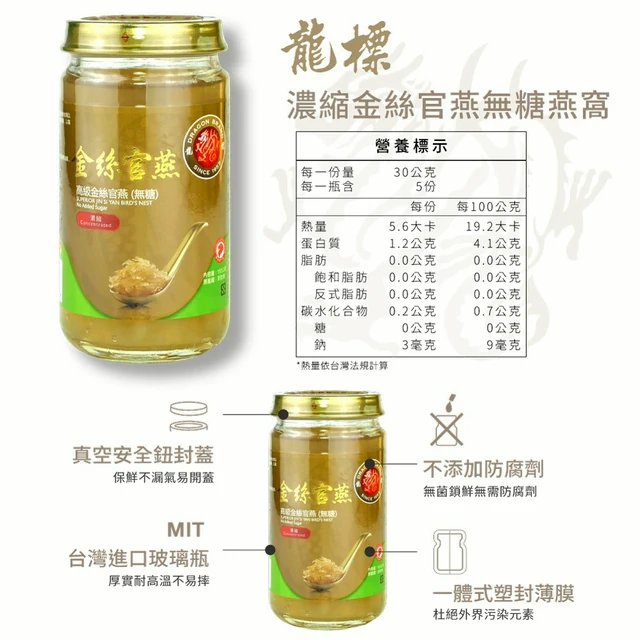 [快速出貨]【龍標燕窩】頂級金絲官燕低糖燕窩75ml_6瓶盒裝