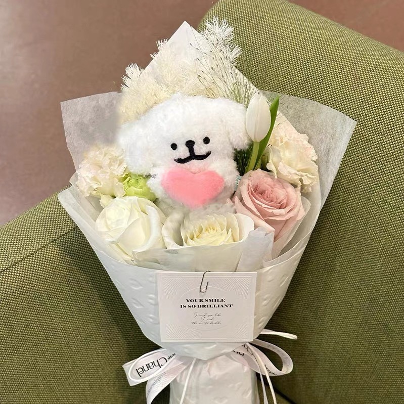 🧡水瓶座生日快樂🧡快速出貨【COZY PLUS+】可愛小狗玩偶卡通花束(附提袋)JAN14#CP2016 情人節禮物 女朋友禮物 閨蜜禮物 生日禮物