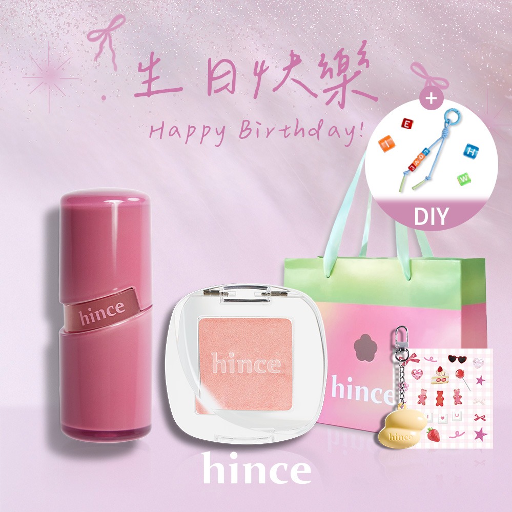 🚚快速出貨【hince】生日快樂!唇頰膏+冰透唇釉+客製串珠吊飾+Dewy Ball貼紙+Dewy Ball化妝包+獨家禮盒(客製化禮物/精美客製吊飾/生日禮物推薦/新品上架)