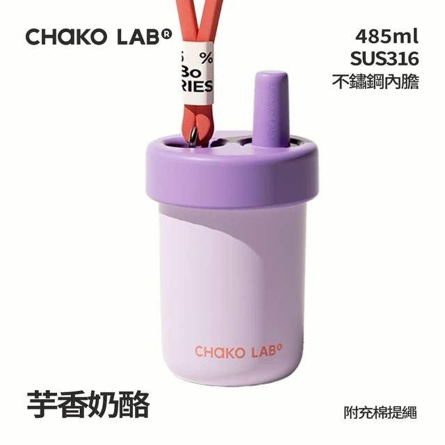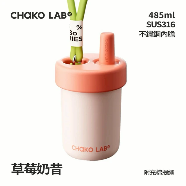 【CHAKO LAB】不鏽鋼陶瓷保溫啵啵杯 485ml 保溫杯 隨行杯 吸管 防滑降噪 提繩