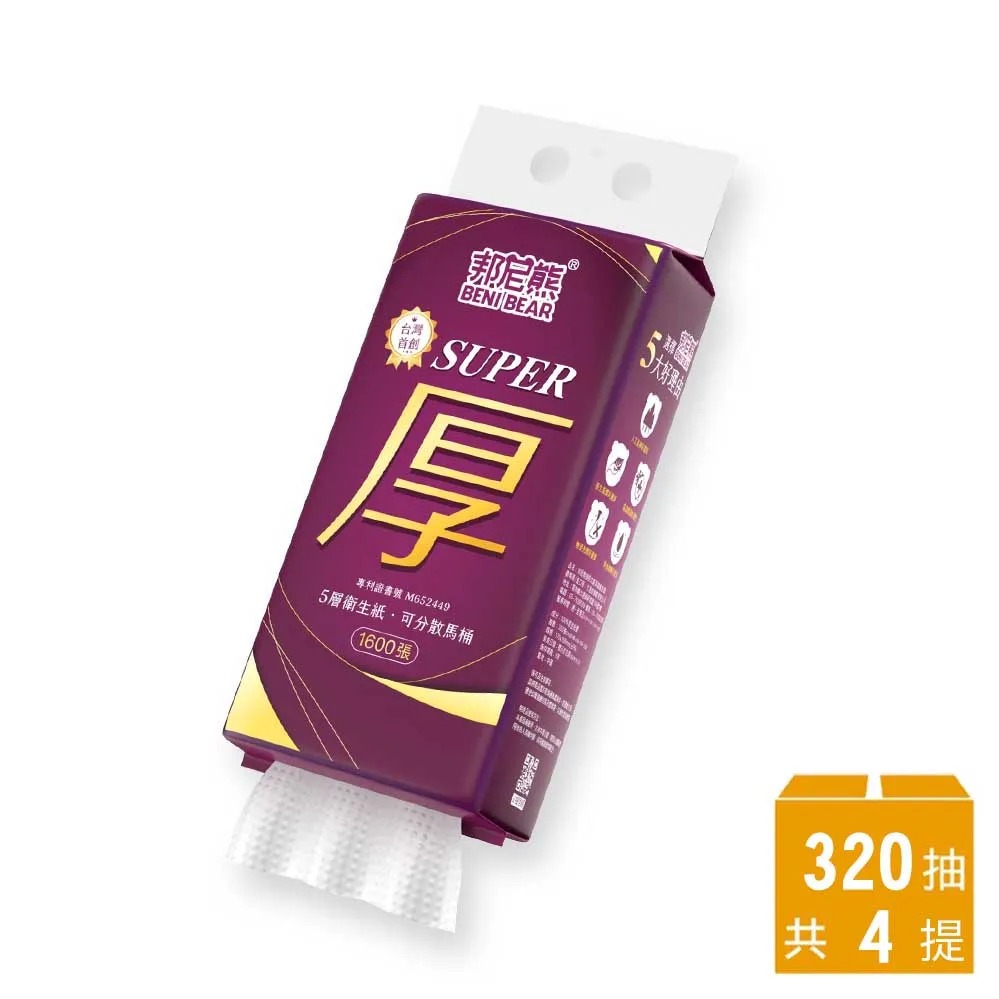 【BeniBear邦尼熊】Super厚五層提掛式底部抽衛生紙180抽x6提