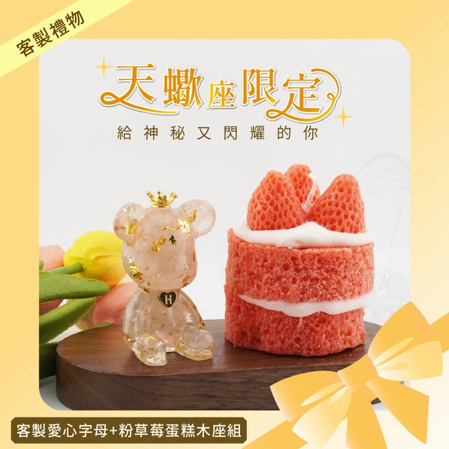 【Hourrae荷萊】🎂祝天蠍座生日快樂-送上能量祝福🐻粉草莓蛋糕 招財好運晶熊 客製字母熊 Q~Z 造型蛋糕蠟燭 水晶擺件 生日禮 交換禮物