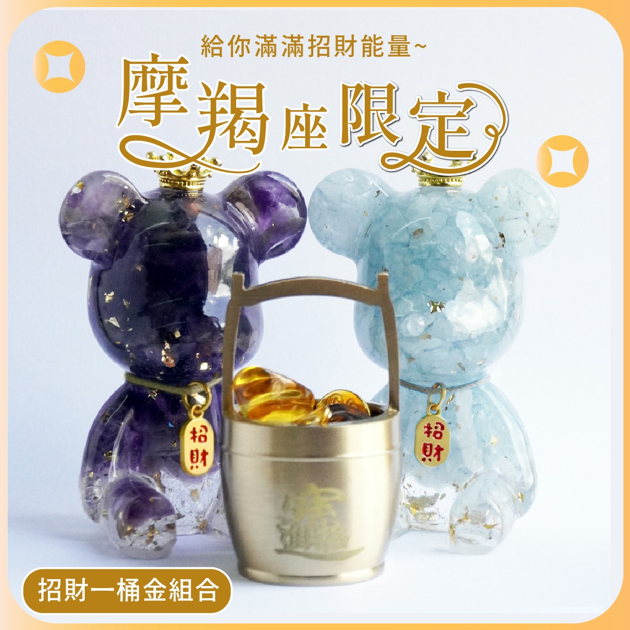 Hourrae 荷萊 橘子蛋糕 招財好運晶熊 客製誕生石 水晶擺件 生日禮 交換禮物