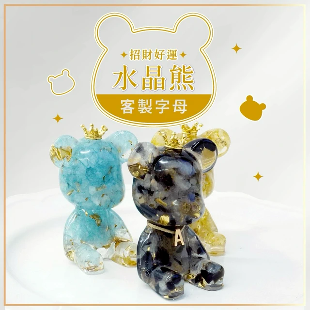 Hourrae荷萊 招財好運晶熊 一桶金 木座組合 生日禮 開店禮 水晶擺件