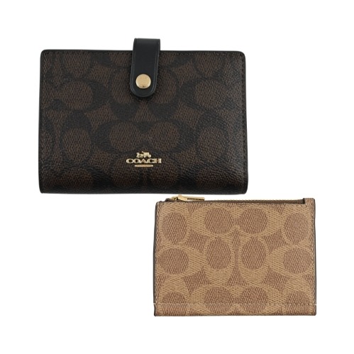 [平輸版] 【COACH】沙色/棕色C LOGO PVC二合一釦式雙摺中夾 真品平輸
