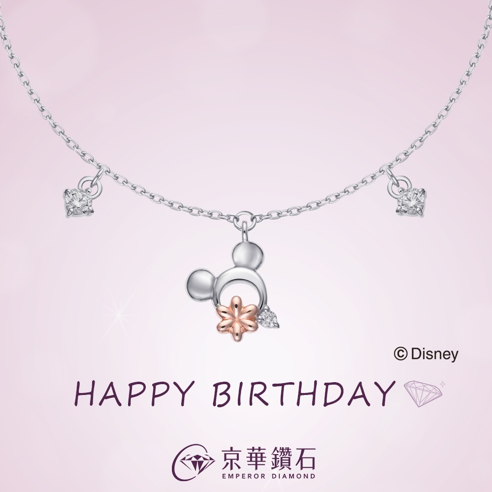 【京華鑽石】迪士尼 10K玫瑰金 鑽石項鍊 米奇與米妮系列|送禮 情人禮物 生日快樂