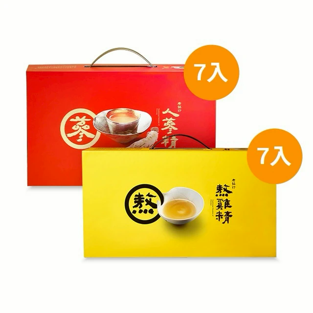 【老協珍】熬雞精禮盒 紅棗枸杞口味(14入) + 人蔘精禮盒 (7入)