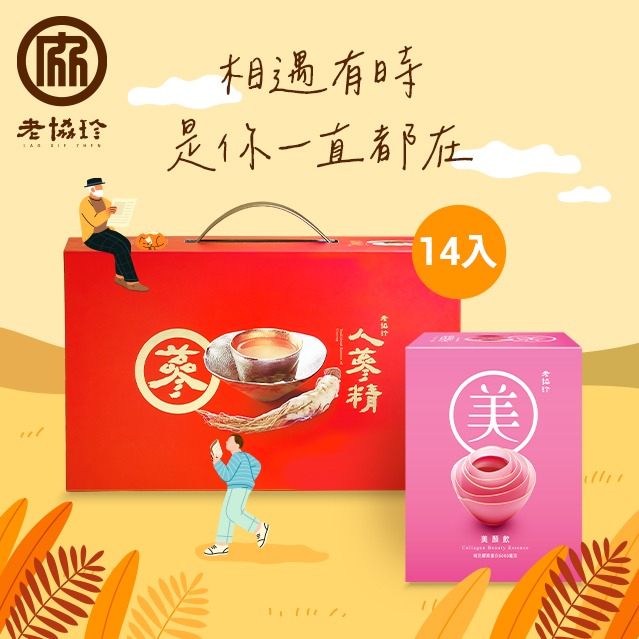 【老協珍】熬雞精禮盒 紅棗枸杞口味(14入) + 人蔘精禮盒 (7入)