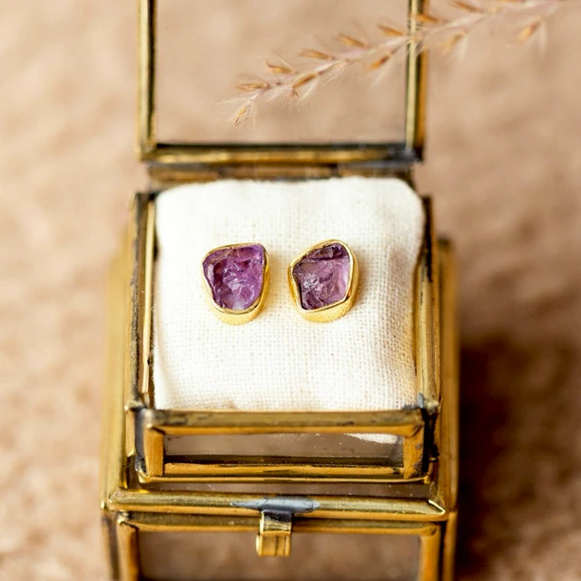 MUJA JUMA 十一月誕生石 |生日石|天蠍座|射手座| 黃水晶 | 925純銀鍍18K金耳環