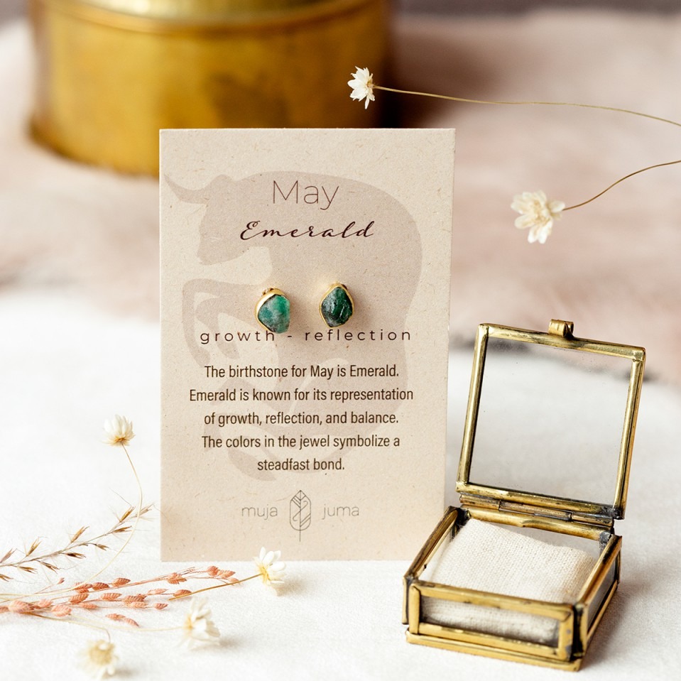 MUJA JUMA 五月誕生石 |生日石|金牛座|雙子座|祖母綠 | 925純銀鍍18K金| 戒指