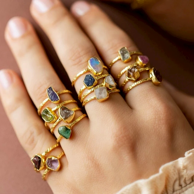 MUJA JUMA 八月誕生石 | 生日石|獅子座 |處女座 |橄欖石 | 925純銀鍍18K金|戒指