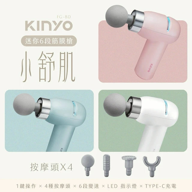 隨時享受按摩療癒感🌈【KINYO】小舒肌迷你6段筋膜槍 (FG-80) 隨身按摩 懶人舒壓神器 交換禮物 聖誕禮物