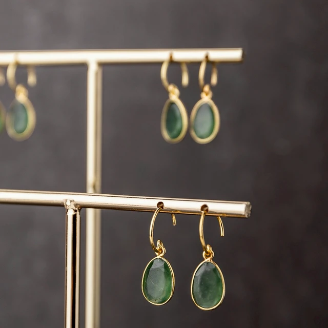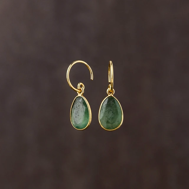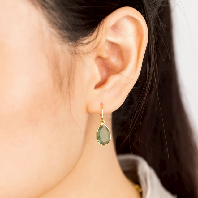 MUJA JUMA 五月誕生石 |生日石|金牛座|雙子座|祖母綠 | 925純銀鍍18K金耳環