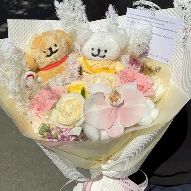預購【LAMIE】睡衣線條小狗玫瑰花束 卡通花束 絨毛玩具花束 玩偶花束 花束