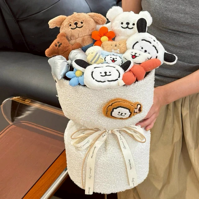預購【LAMIE】泰迪絨棕單隻線條小狗(小束) 卡通花束 絨毛玩具花束 玩偶花束 花束