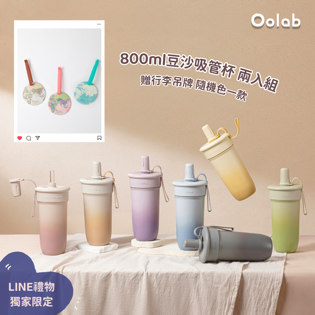 【Oolab良杯製所】⭐熱銷組合補貨到🔥|豆沙吸管杯800ml-Oolab字母皮革杯提袋組🚚快速出貨