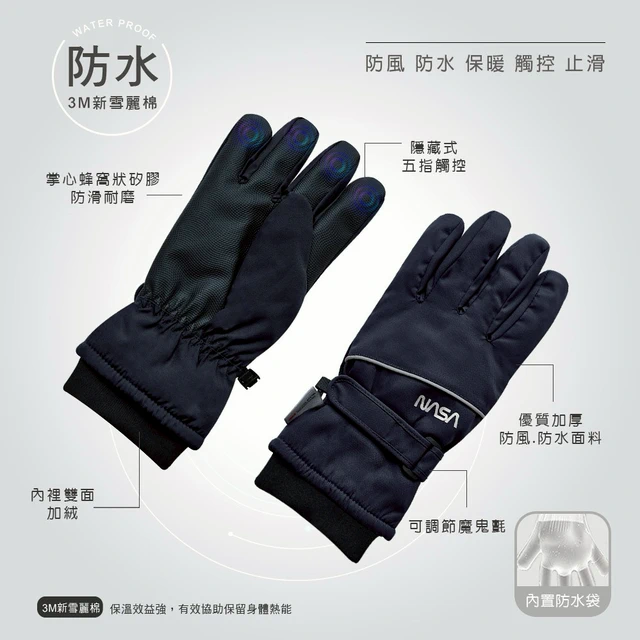 【ONEDER】NASA 航太系列防水澳絨手套 滑雪手套 男女適用 保暖觸控手套-2件組 (NS-HW06~NS-HW07)⚡快速出貨