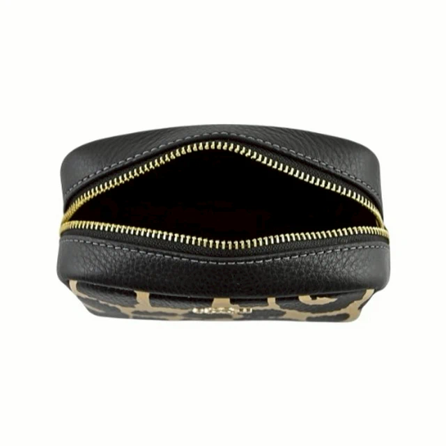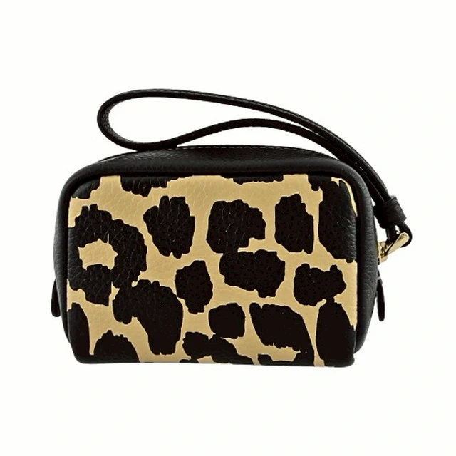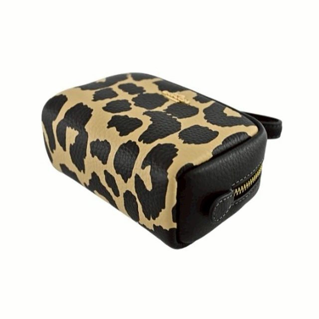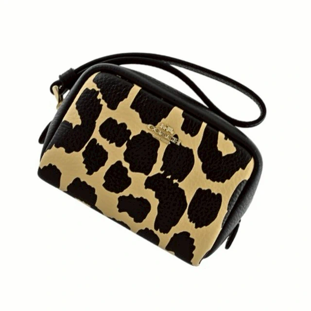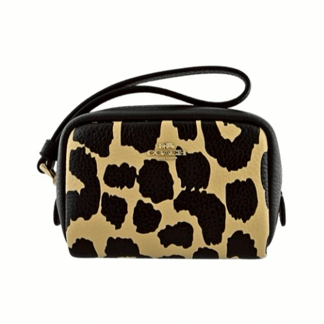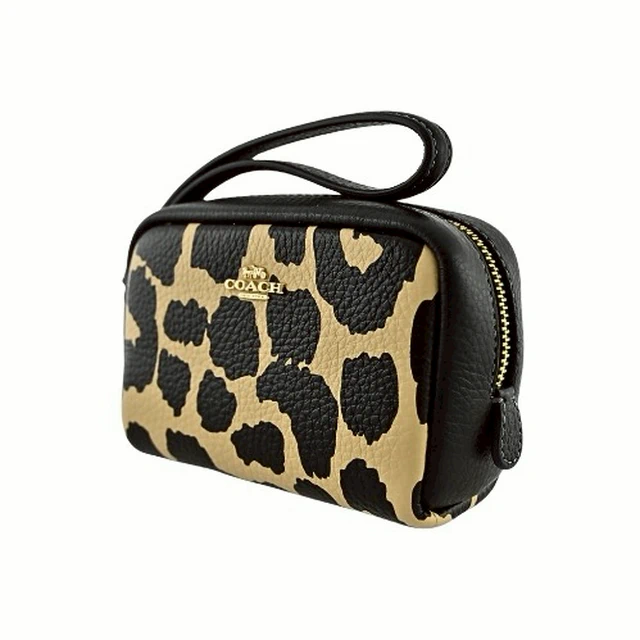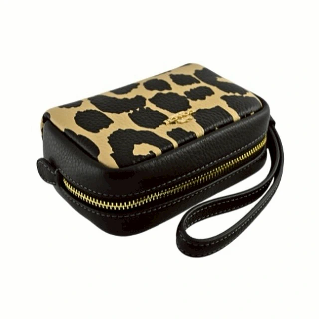 [平輸版] 【COACH】黑/可可色豹紋印花荔枝紋皮革L型拉鍊中款手拿包 真品平輸