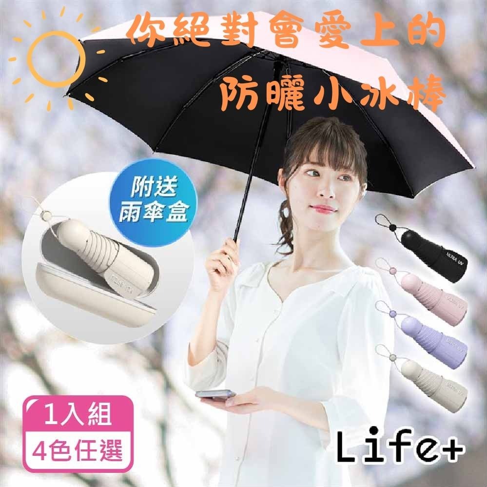 【Life+】星耀掌心のミニ守傘輕量230g五折24骨加厚黑膠傘/口袋傘/晴雨兩用抗UV傘附雨傘盒2入/組_4色任選