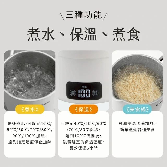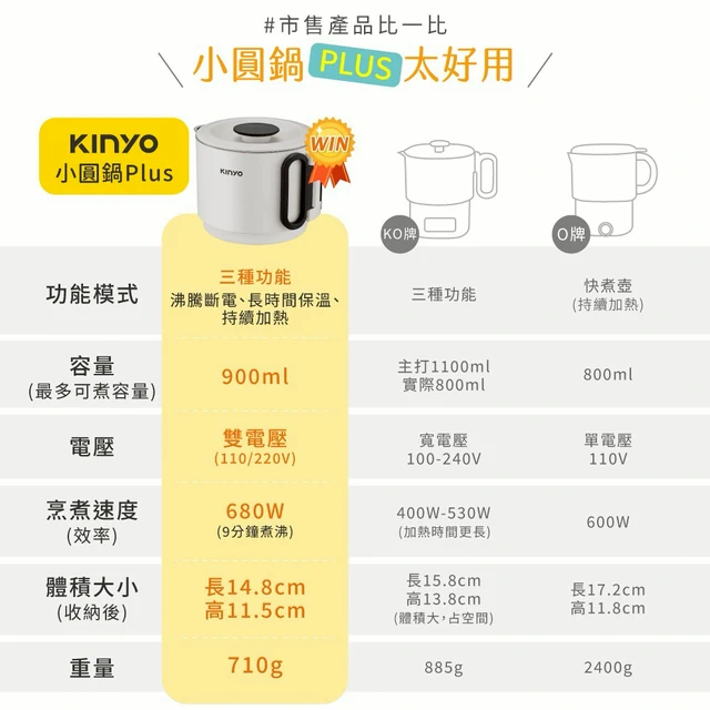 優異304不鏽鋼厚實材質🤩【KINYO】溫控寬電壓快煮杯 (KIHP-2260) (SHOPPING99)