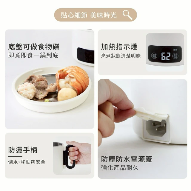 【PHILIPS 飛利浦】Q彈鎖香多料理電子鍋 小香鍋 雲朵白色 HD3073