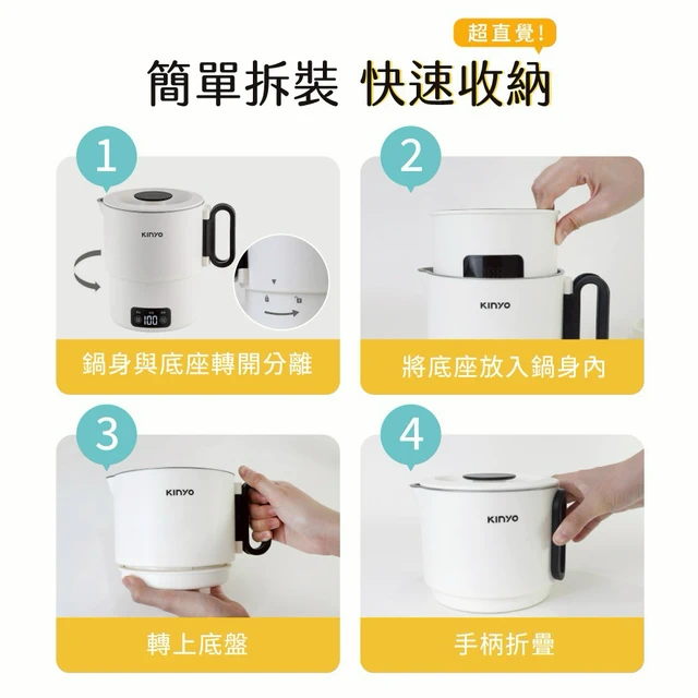 雙電壓快速切換❣️【KINYO】3in1雙電壓旅行小圓鍋 (TRFP-051) ✨疊放設計,收納後體積超迷你,外出攜帶不占位✨ (SHOPPING99)