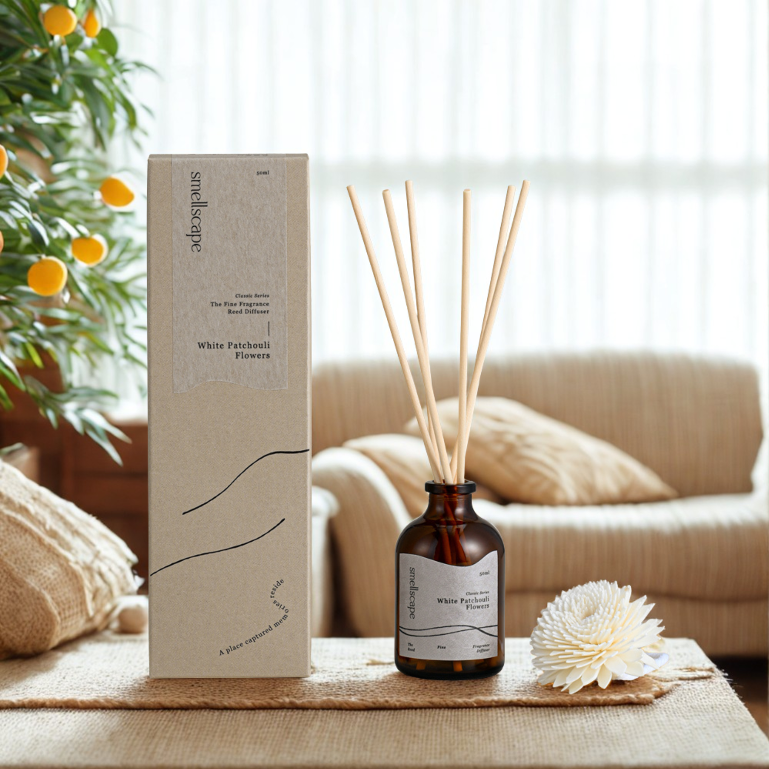 【smellscape】白麝香 手工香氛擴香瓶50ml|花香調|附6支擴香棒+1朵擴香花|快速出貨
