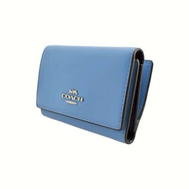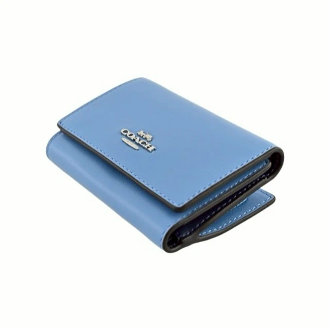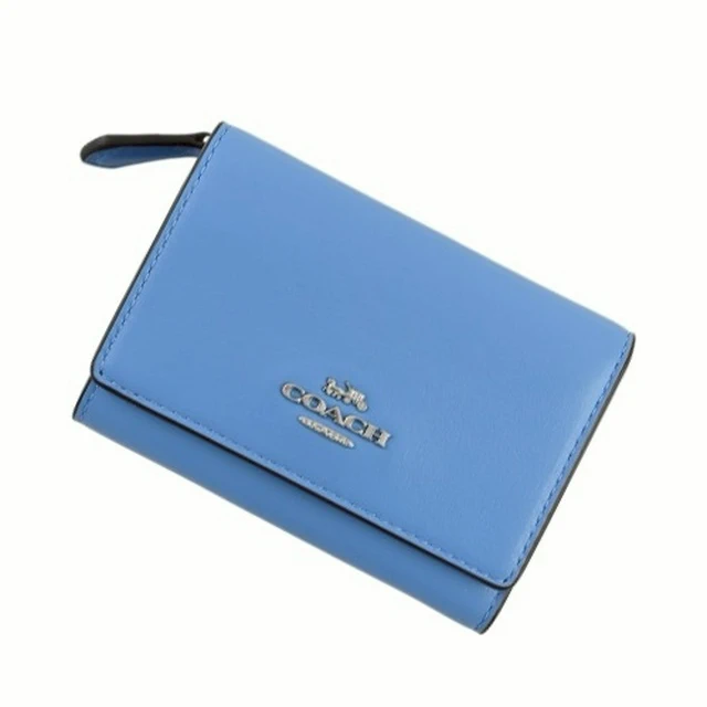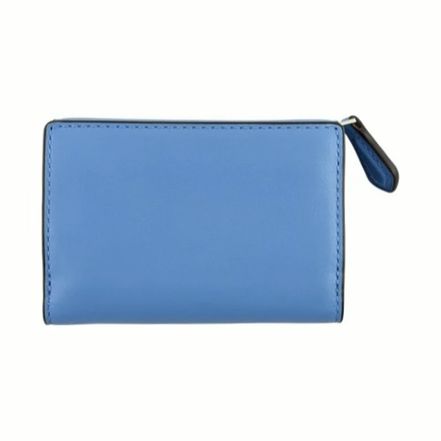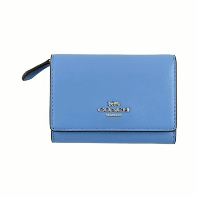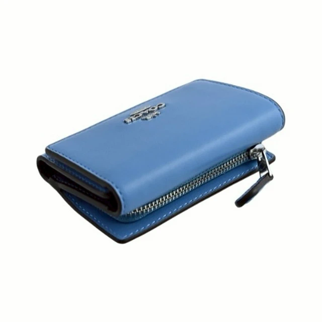 [平輸版] 【COACH】 泳池藍荔枝紋皮革C字拉鍊袋釦式雙摺短夾 真品平輸