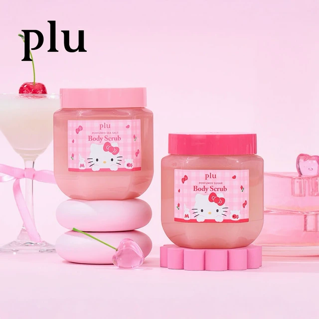 【Plu 】HELLO KITTY 維他命亮膚磨砂沐浴露套組 |含沐浴露 500ml+Kitty 搓澡沐浴球