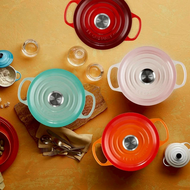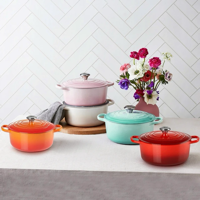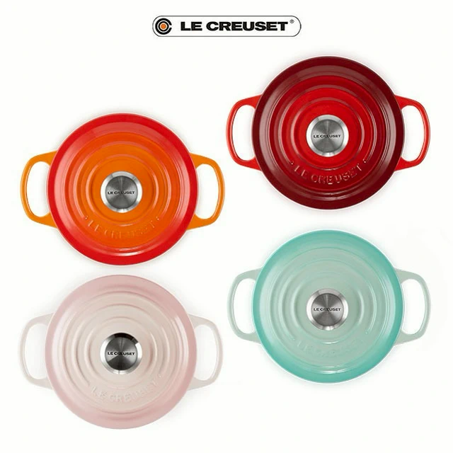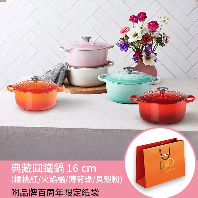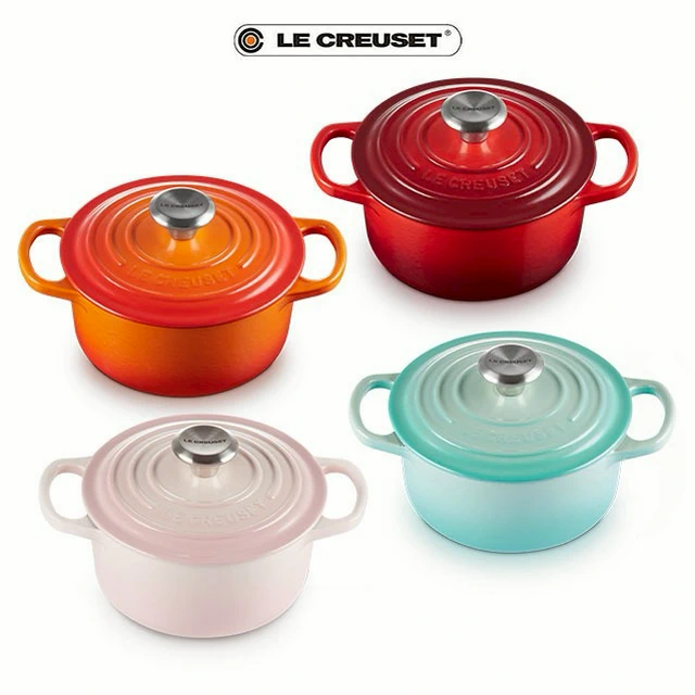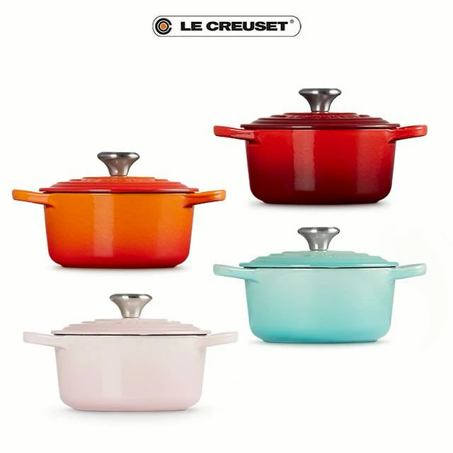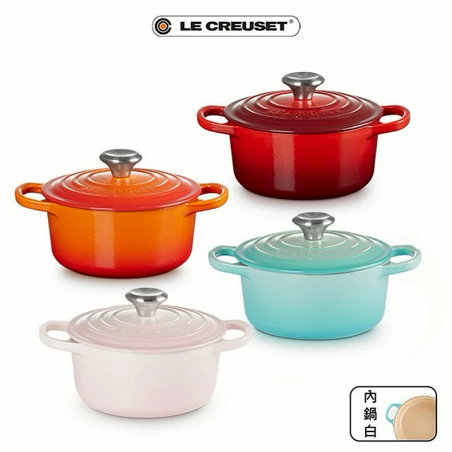 【收禮者可自選】Le Creuset-琺瑯鑄鐵鍋圓鍋 14 cm(雪紡粉/蛋白霜-小熊鋼頭-內鍋白 2色可選 )