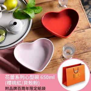 【收禮者可自選】Le Creuset-瓷器花蕾系列心型碗 650ml (櫻桃紅/貝殼粉-2色可選)
