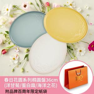 【收禮者可自選】Le Creuset-春日花園系列瓷器橢圓盤36cm (洋甘菊/蛋白霜/海洋之花-3色可選)