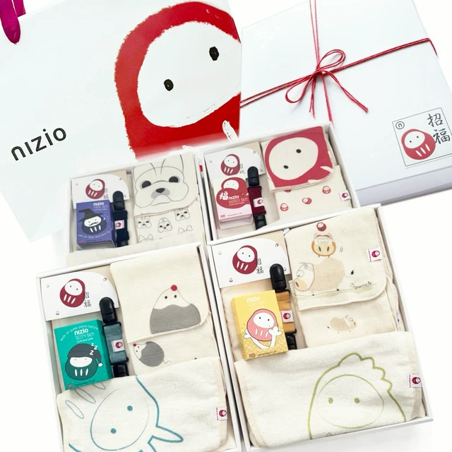 【nizio】招福掌隨身枕包巾彌月禮物組 (附禮袋+禮盒搭配紅棉線)