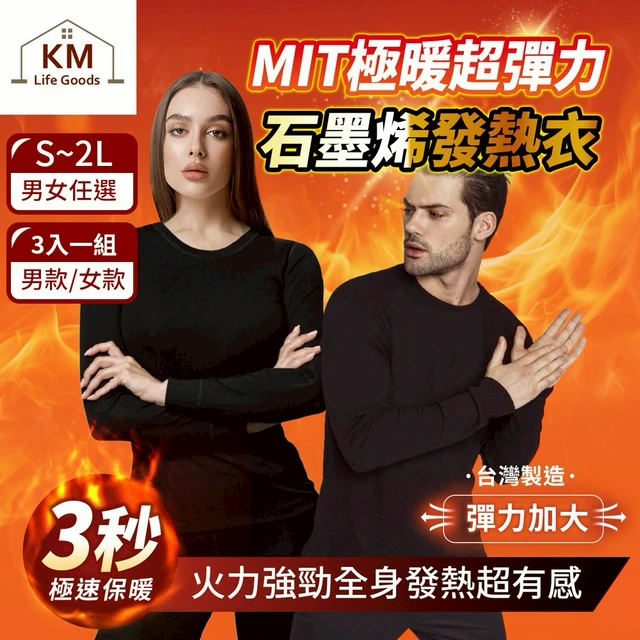 【KM生活】MIT極暖超彈力石墨烯發熱衣/鋅石墨烯保暖衣1入_男女款任選
