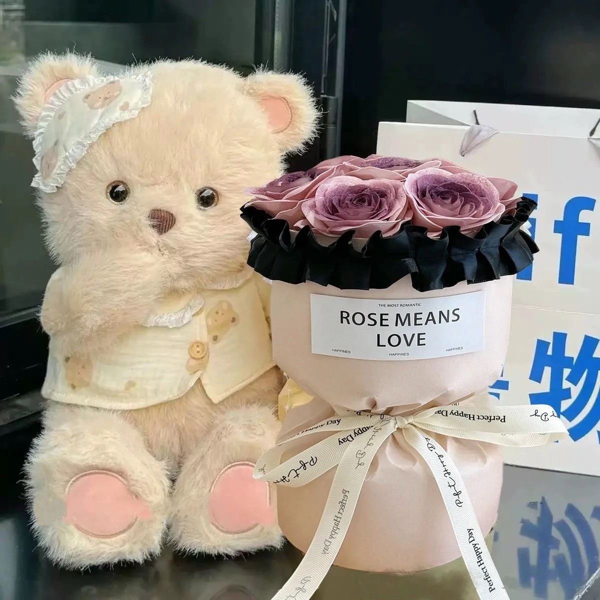 【花花市集】花花市集 草莓熊玫瑰花束 香皂花束 創意花束 永生花 生日禮物 - 限量款 送隨機精美贈品 G2