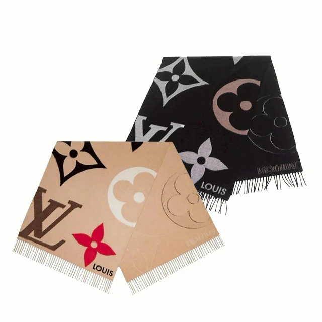 [平輸版]Louis Vuitton Essential Monogram圖案羊毛圍巾(黑色)真品平輸
